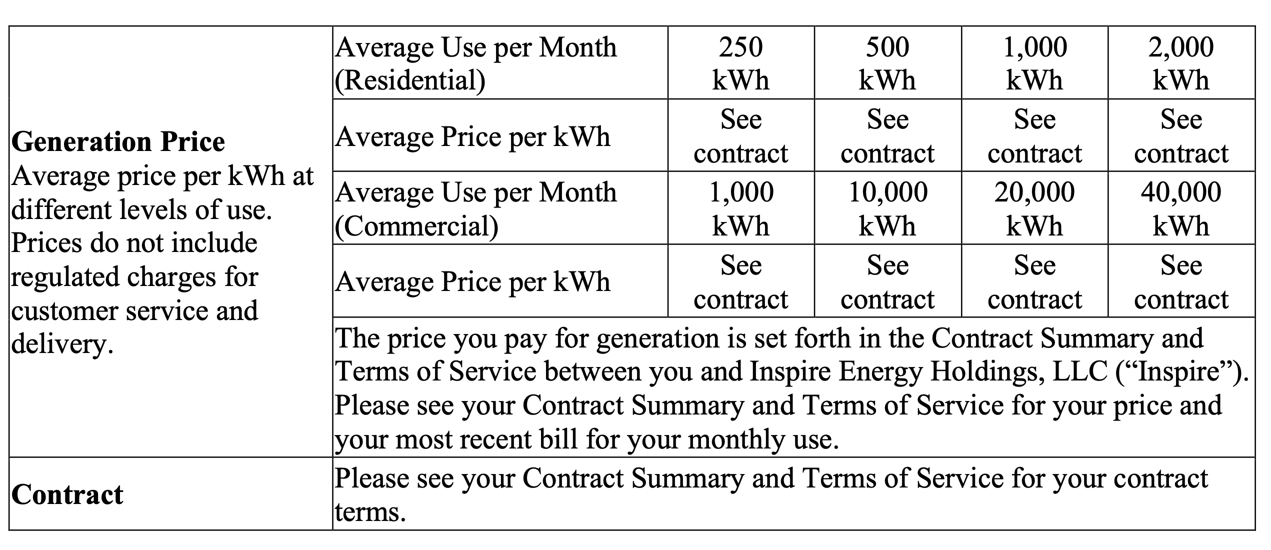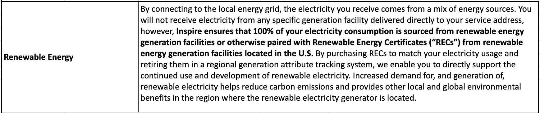 Environmental Disclosure for the Electricity Products of Inspire Energy Holdings, LLC