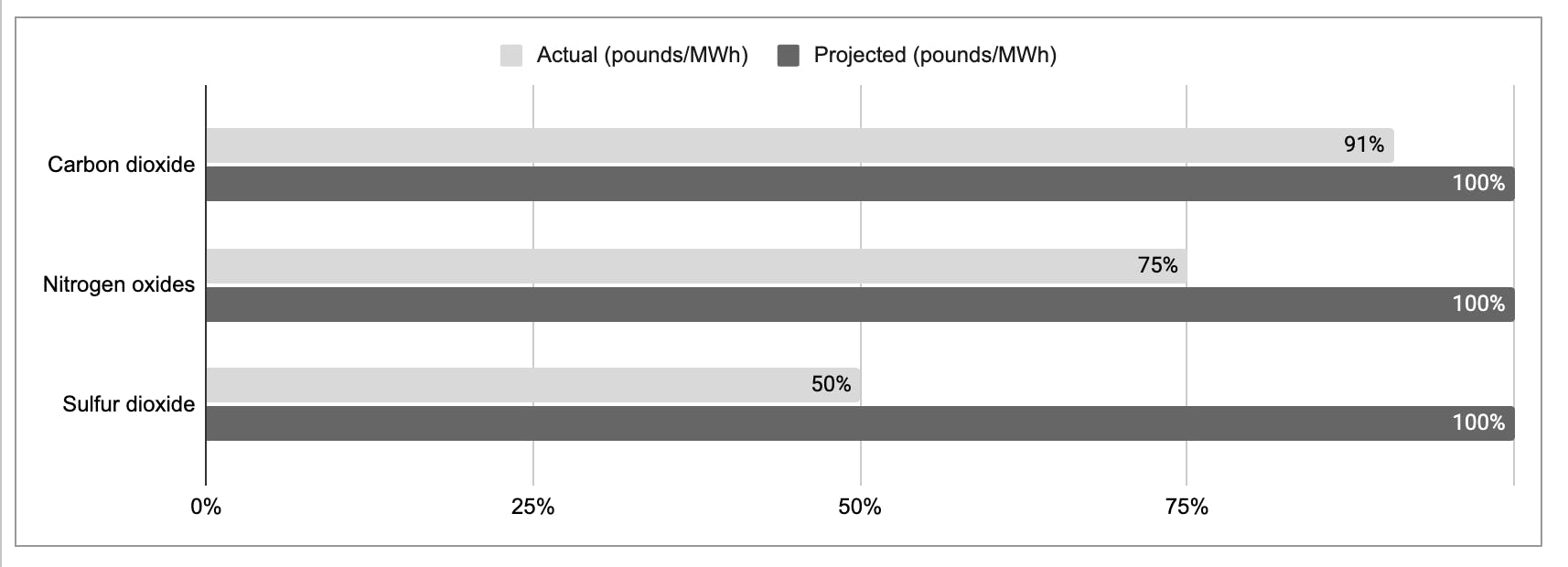 Product-specific projected and actual air emissions for this period compared to the regional average air emissions.