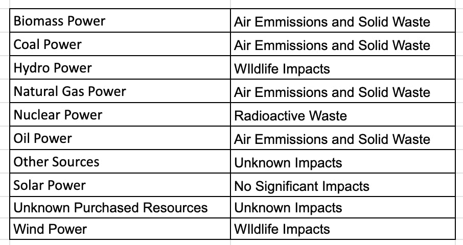 A comparison between the sources of generation projected to be used to generate this product and the actual resources used during this period
